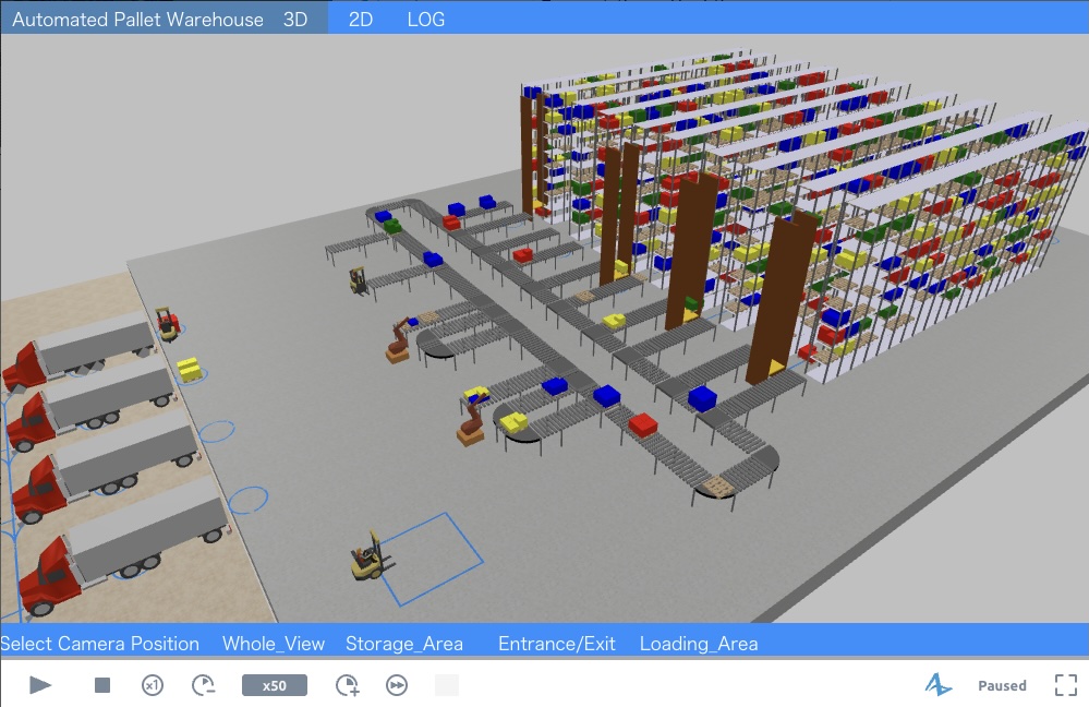 本モデルは、一般的なパレット自動倉庫を対象としたシミュレーションモデルです。
